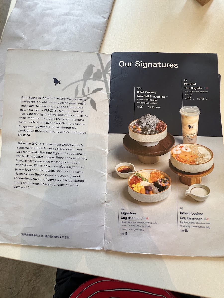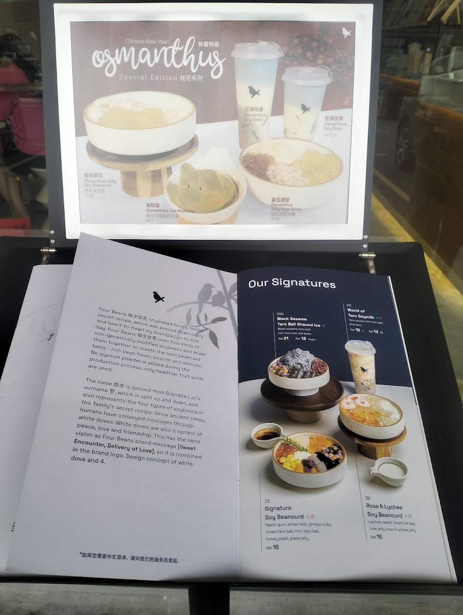 Four Beans Soy Desserts Cheras Traders Park Menu